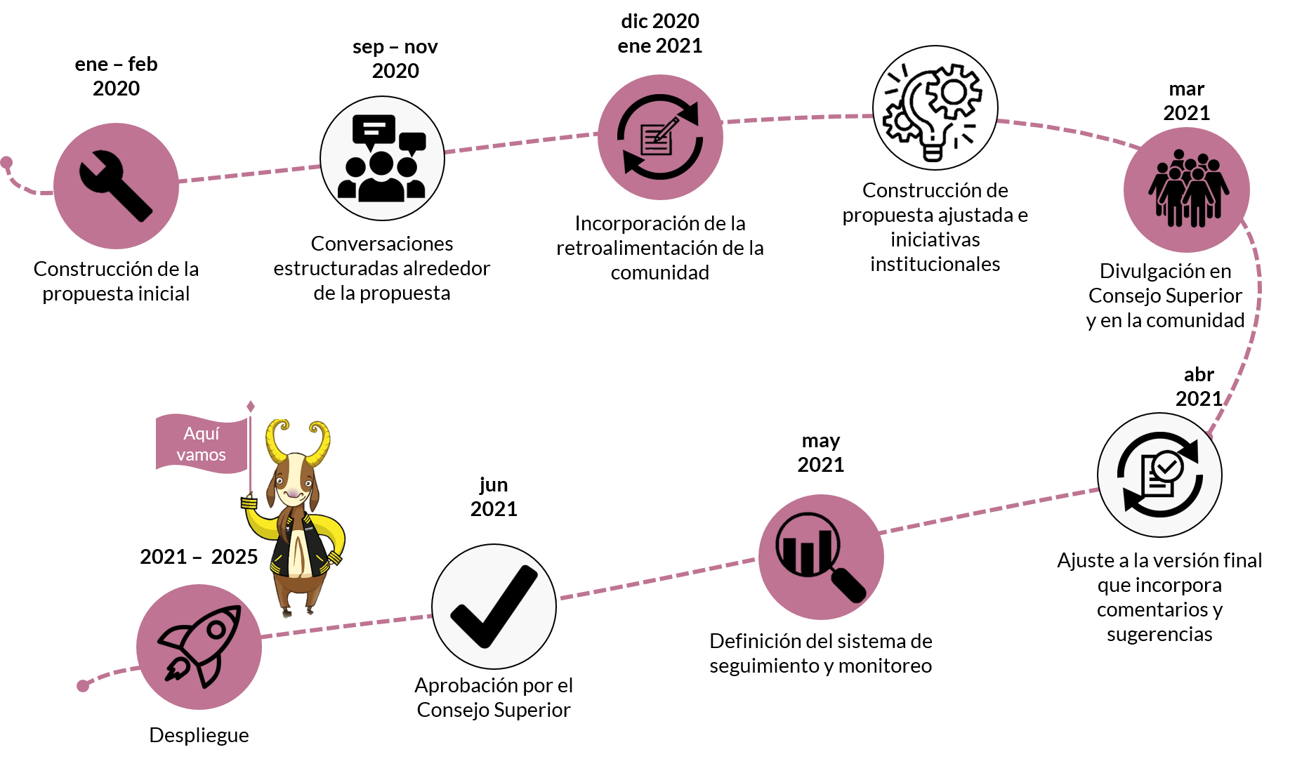 Se generó una segunda versión de la propuesta del PDI, que incluye las iniciativas institucionales a través de las cuales se implementará el PDI y está versión se compartirá con la comunidad para recibir retroalimentación.